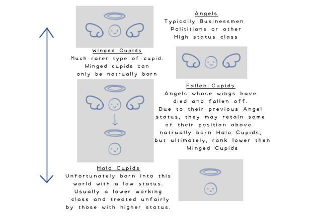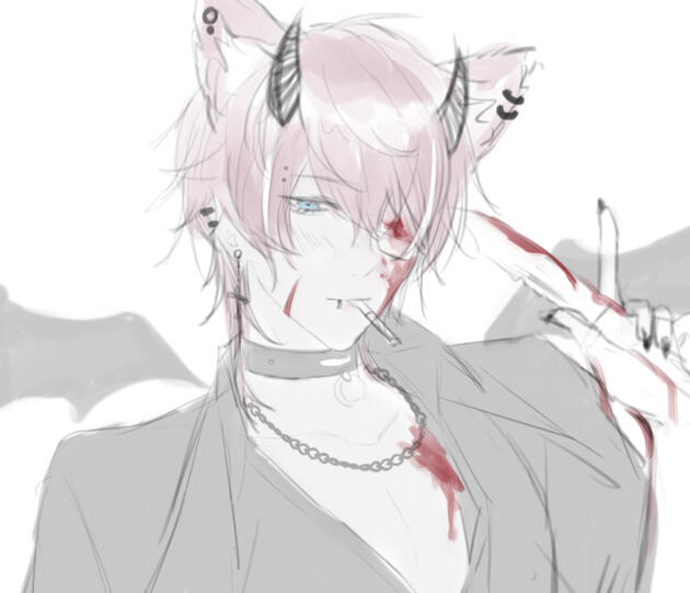 explanation is actual shit bc my english is bad T__T this is a work in progress*Limit is the name of my character/persona but calling me Hiku is fineThis character is based in a world beyond earth where Angels exist, Limit is considered a "Cupid" which is a low level type of Angel. There are two types of cupids, those born with only wings, and those born with only halos. Naturally born Cupids are usually born as twins, Typically, one child with a halo and the other with wings. As Angels (who are born with both wings and halo) grow older there is a possibility of their wings dying and falling off thus becoming a Fallen/Halo Cupid. Halo Cupids are considered lower class than Winged Cupids as there is a larger population of Halo Cupids. Angel types are strongly associated with social status in this world. Cupid angels will shunned or even killed off if born into wealthy families.Limit is a halo cupid who’s twin sibling was taken away when they were children. As he grows older, he is left alone in poverty. As a halo cupid with no background, it's difficult for him to get a decent job so he resorts to various odd jobs such as sexwork and being a maid thus his Service Boy title. With his twin still missing and his desperate lifestyle, he's driven mad with his desire to know the truth about his sibling's disappearance and to attain a better life where his status is higher than the high angels that oppressed him and other halo cupids.By chance, he discovers the potential to gain wings through body modification, making him a full Angel. Though, the means of doing this requires a live Angel being amputated of their wings. He begins living a more luxurious lifestyle as a full Angel but it doesn't last very long. Because wings are foreign to a naturally born cupid's body, over time they "die" and need to be replaced with new wings. As word spreads underground, the market for live wings is highly sought after by Halo Cupids who wish to live a privileged life as full Angels. He starts using his jobs to isolate and dismember Angel's wings to continue living as a full Angel and to earn his fortune and reputation selling wings to the underground body modification business.
